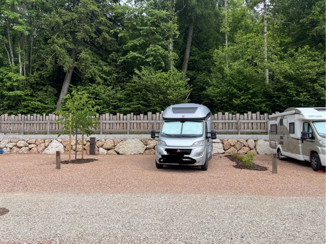 Väl framme har vi checkat in på en liten camping. 5 stjärnor enligt alla guider. Receptionen är superfräsch, duschutrymmen etc jättefina. Men det är så trångt här när vi kör in till vår plats att vår långa husbil inte kommer runt i de skarpa svängarna inne på området. A surade ur och körde rätt över en rabatt. De flesta blommor klarade sig.