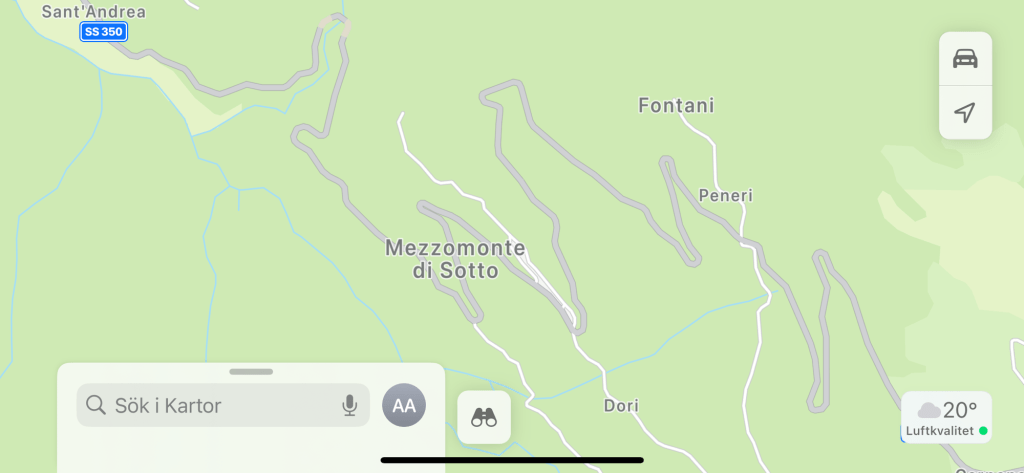 Vi tog sikte på Folgaria i Italien, lite sydost om Trento, där P ska delta i OCR-EM (hinderbanelöpning). Vi visste att det skulle vara lite backigt på småvägen från Trento, men j-ar vad brant det var. Det gick från 168 m ö h till 1366 m ö h upp, längs fruktansvärda hårnålskurvor och branta stup.