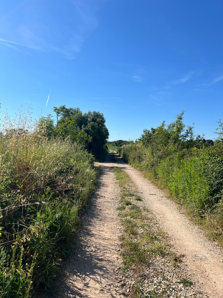 En promenad på 4 km blev det innan det blev för varmt. Stigarna tog oss ut bland åkrar bakom själva samhället