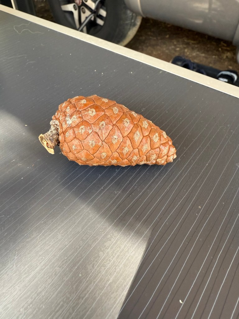 Förutom blixtar och dunder precis i området regnade det hårda kottar så det lät som om någon kastade sten på husbilen, helt omöjligt att somna, men ändå lite mysigt att ligga inne och höra vinden dåna. Det gick ju ganska fort över.