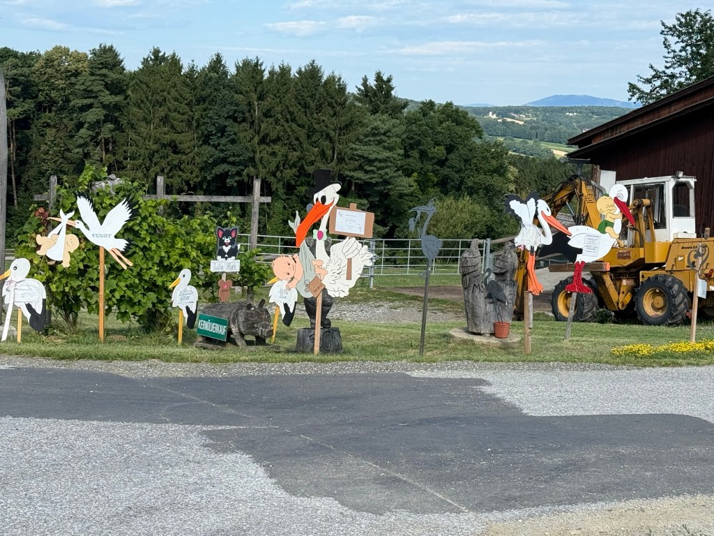 I den välordnade byn sätter man upp stora plakat eller trä-storkar längs gatan när någon fått barn, med uppgift om namn, längd, vikt och datum. Stärker på något vis vår teori om att det är något sekteristiskt över det här samhället.