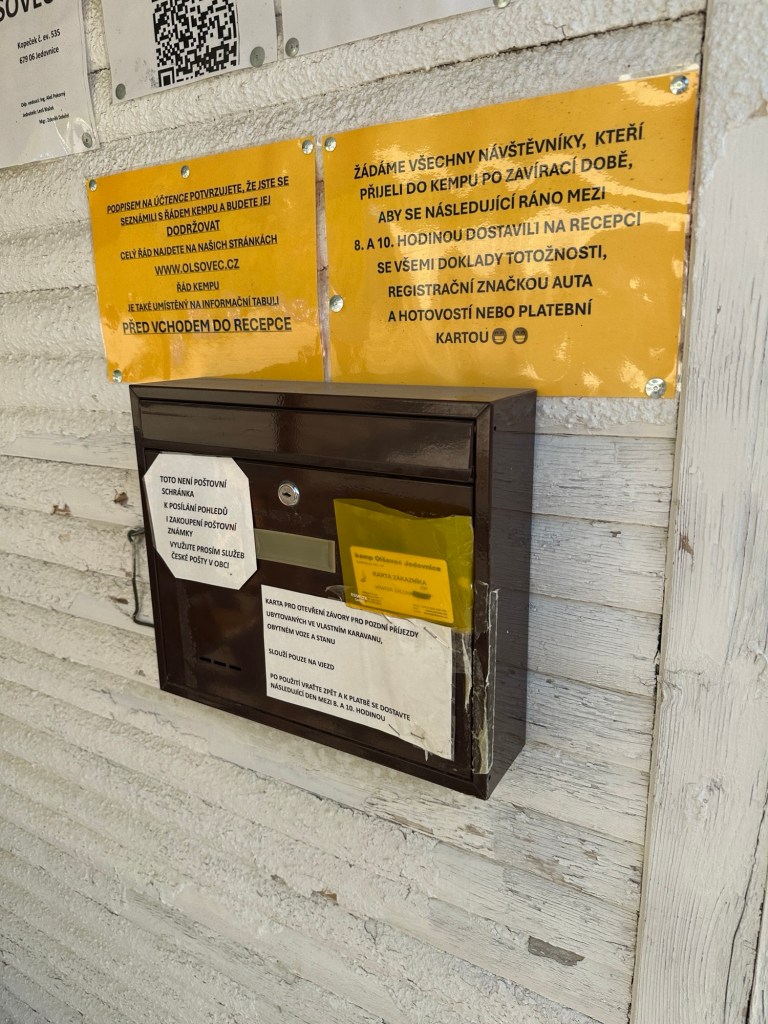 I morse gick vi upp tidigt eftersom vi hade en lång resväg framför oss. A smög iväg till dusch-huset för att ta en snabb dusch. Lampan funkade inte riktigt därinne, men det var tillräckligt ljust ändå. Precis när hon duschat klart kommer en synnerligen sur städerska in och skriker på tjeckiska och pekar på lamporna. Tydligen betyder de släckta lamporna att duschrummet var stängt. A ber om ursäkt, tanten går ut. När A torkat sig hjälpligt, fått på sig lite kläder i en hast för att gå därifrån upptäcker hon att städerskan minsann låst dörren från utsidan. Det var bara till att banka och be snällt om att få komma ut. Märkligt.